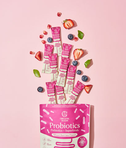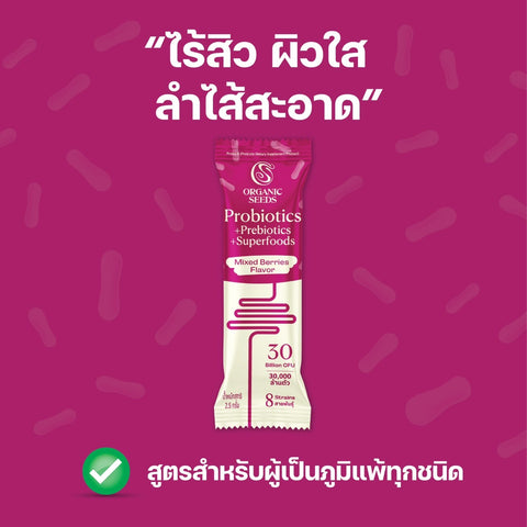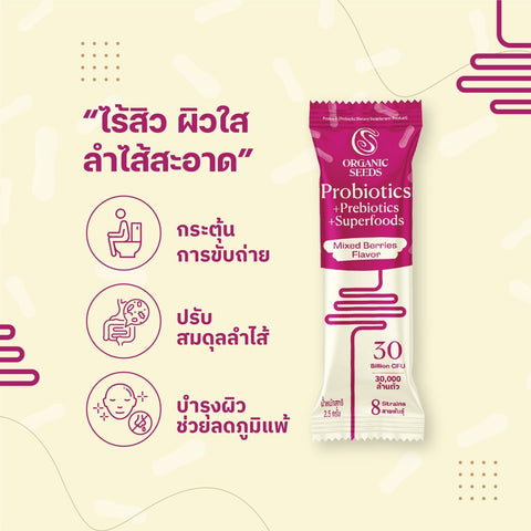 Organic Seeds โพรไบโอติก 8 รสมิกซ์เบอร์รี่ Probiotics + Prebiotics + Superfoods - Mixed Berries Flavor (2.5g x 15 Sachets)