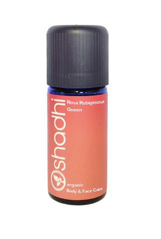 Rosa Rubiginosa Queen Facial Oil (6310) is a moisturising organic skincare oil suitable for dry skin and especially helpful to hydrate mature skin and regenerate healthy skin. It contains pure essential oils in a base of nourishing vegetable oils. No preservatives, chemicals or synthetic ingredients. The scent is bright and floral.