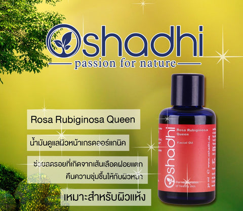 Rosa Rubiginosa Queen Facial Oil คือน้ำมันดูแลผิวหน้าเกรดออร์แกนิค เหมาะสำหรับผิวแห้ง และมีกลิ่นหอมสดชื่นของดอกกุหลาบ ผลิตภัณฑ์นี้ผสมน้ำมันหอมระเหยและน้ำมันพืช และไม่มีส่วนผสมของสารกันบูด สารเคมี หรือสารสังเคราะห์ทุกชนิด น้ำมันดอกกุหลาบสามารถช่วยลดรอยที่เกิดจากเส้นเลือดฝอยแตก และคืนความชุ่มชื้นให้กับผิวหน้า น้ำมันเจอราเนียมโรสช่วยให้ผิวผลิตน้ำมันตามปริมาณที่เหมาะสม น้ำมันโรสฮิปซึ่งโดดเด่นด้านการฟื้นฟูและสร้างผิวใหม่