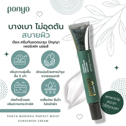 PANYA MORINGA Perfect Moist Sunscreen SPF50 PA+++ (50g) ครีมกันแดดสูตรใหม่ เมจิค ฟอร์มูล่า
