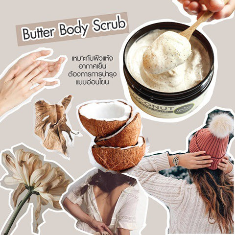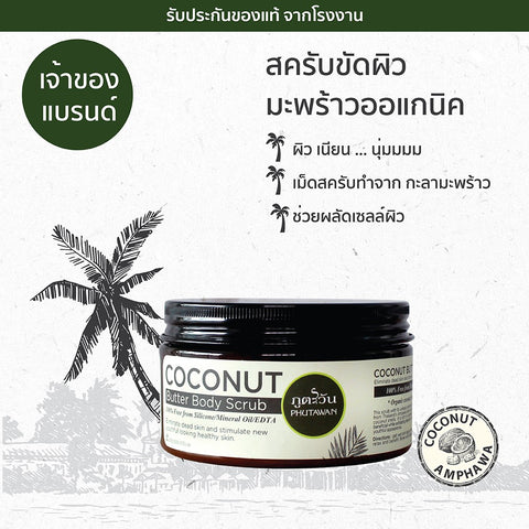 Phutawan ภูตะวัน สครับขัดผิวมะพร้าว เนื้อบัตเตอร์ เหมาะสำหรับคนผิวแห้ง แพ้ง่าย Organic Coconut Butter Body Scrub (240 g)