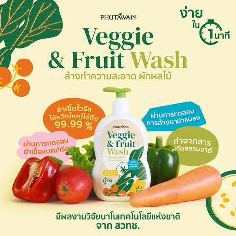 Phutawan Veggie & Fruit Wash (400ml) ภูตะวัน เวจจี้ แอนด์ ฟรุ๊ต วอช ผลิตภัณฑ์ทำความสะอาด ใช้สำหรับล้างผักและผลไม้ 400ml