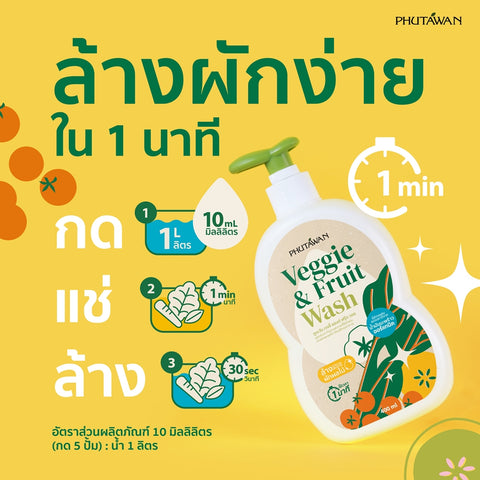 Phutawan ภูตะวัน เวจจี้ แอนด์ ฟรุ๊ต วอช ผลิตภัณฑ์ทำความสะอาด ใช้สำหรับล้างผักและผลไม้ Veggie & Fruit Wash (400ml)