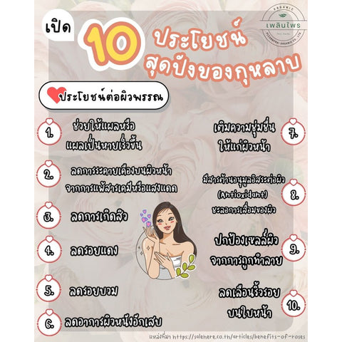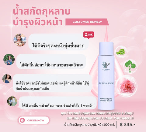 ปลอบประโลมผิวอย่างอ่อนโยนจากกุหลาบ คุณค่าจากกลีบกุหลาบจากยอดเขาสูงของ จ.ชัยภูมิ ผสานกับสรรพคุณจากบัวบกและว่านหางจระเข้ ช่วยปรับสมดุลผิวจากภายใน ช่วยให้ผิวอิ่มน้ำ ผิวเรียบเนียน ชุ่มชื้น ริ้วรอยแลดูจางลง