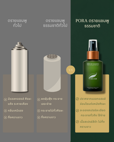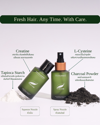 Pora Hair Dark Dry Shampoo โพรา แฮร์ ดาร์ค ดราย แชมพู ผลิตภัณฑ์สเปรย์แชมพูแบบแห้ง (100 ml)