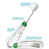 REUSABLE & REPLACEABLE - Get the ultimate eco conscious usability. Perfect for any trip with a reusable handle and a replaceable head. No need for an additional travel case! 2 count Replacement Heads available online in Super Soft Floss, Soft and Medium.