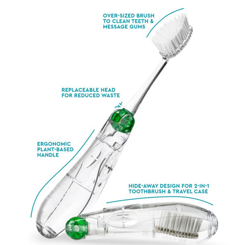 RADIUS UNFOLD SNAP BRUSH - A 2 in 1 toothbrush and travel case! Clean jack knife design for sleek and compact travel while still enjoying the luxurious RADIUS brushing experience!