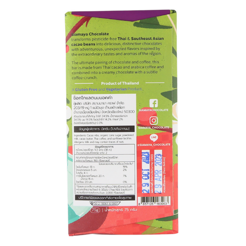 Siamaya Chocolate ช็อกโกแลตนมมอดค่า Coffee Crunch Milk Chocolate (75g)