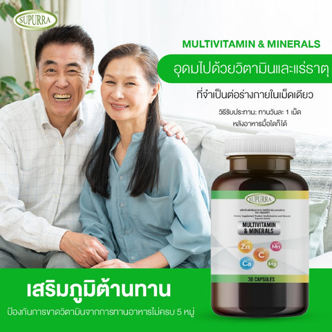 Supurra ผลิตภัณฑ์เสริมอาหาร มัลติวิตามิน และแร่ธาตุ ตรา สุเพอร์ร่า MultiVitamin & Minerals (30 Capsules)