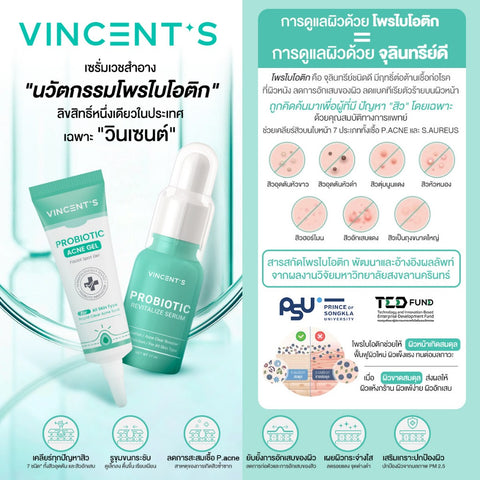 Vincent's วินเซนต์ เซรั่มโพไบโอติกบำรุ่งผิวหน้า Probiotic Revitalize Serum (17 ml)